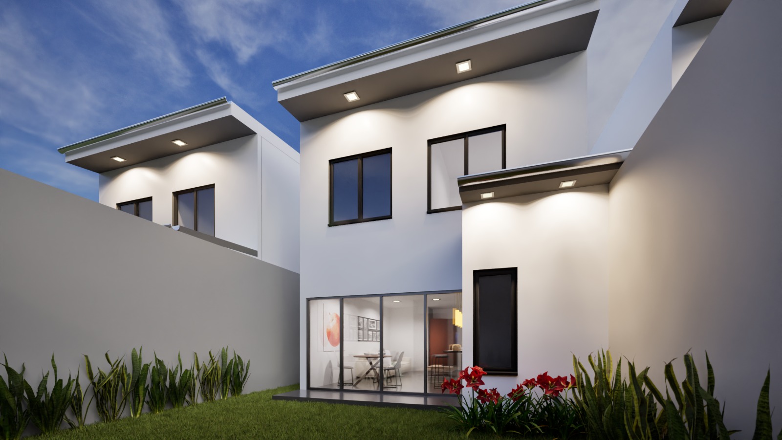 Casa de dos plantas con mayor área habitable y medio baño social.